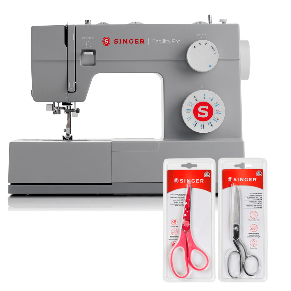 Kit Máquina de Costura Facilita Pro 4423 + Tesoura 8" Tecido e Tesoura Multiuso Rosa